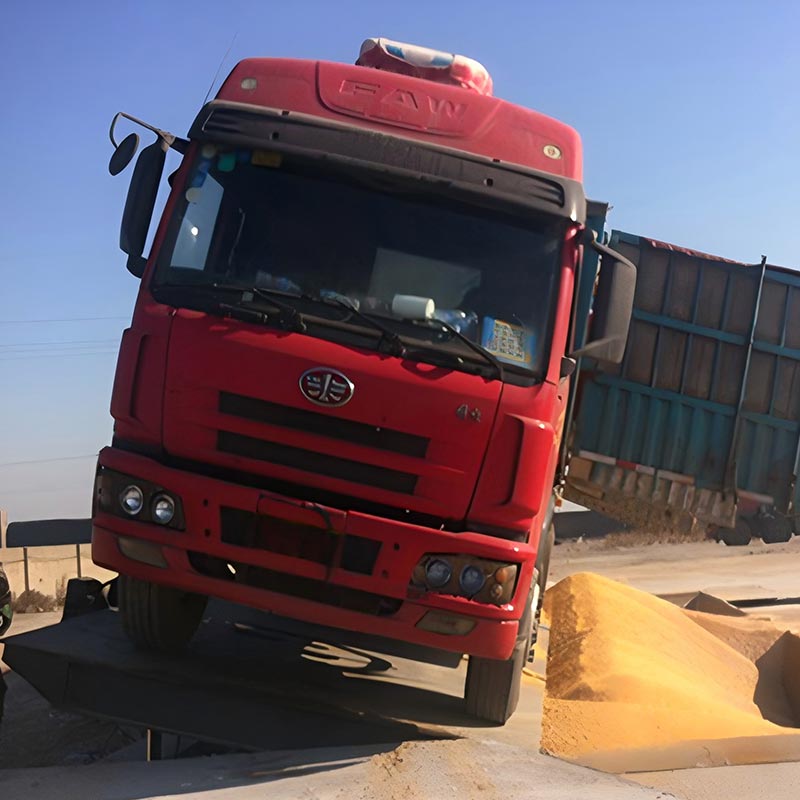 側(cè)翻式卸車(chē)機(jī)采用液壓裝置,通過(guò)液壓系統(tǒng)將整車(chē)傾斜至一側(cè),實(shí)現(xiàn)快速高效的貨物卸載。該平臺(tái)提供45°和55°兩種側(cè)翻角度,用戶可根據(jù)